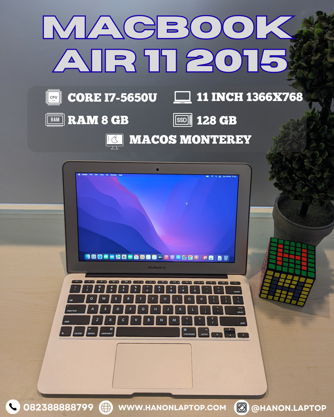 Macbook air 11 dengan Core i7 dan Ram 8GB yang langka. Umumnya hanya core i5 dan Ram 4GB.